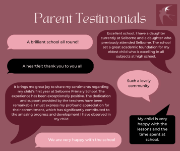 - Selborne is doing a great job. I particularly value the new initiatives in informing the children about sustainable living. My son was a forest school ambassador this year and he really enjoyed it.