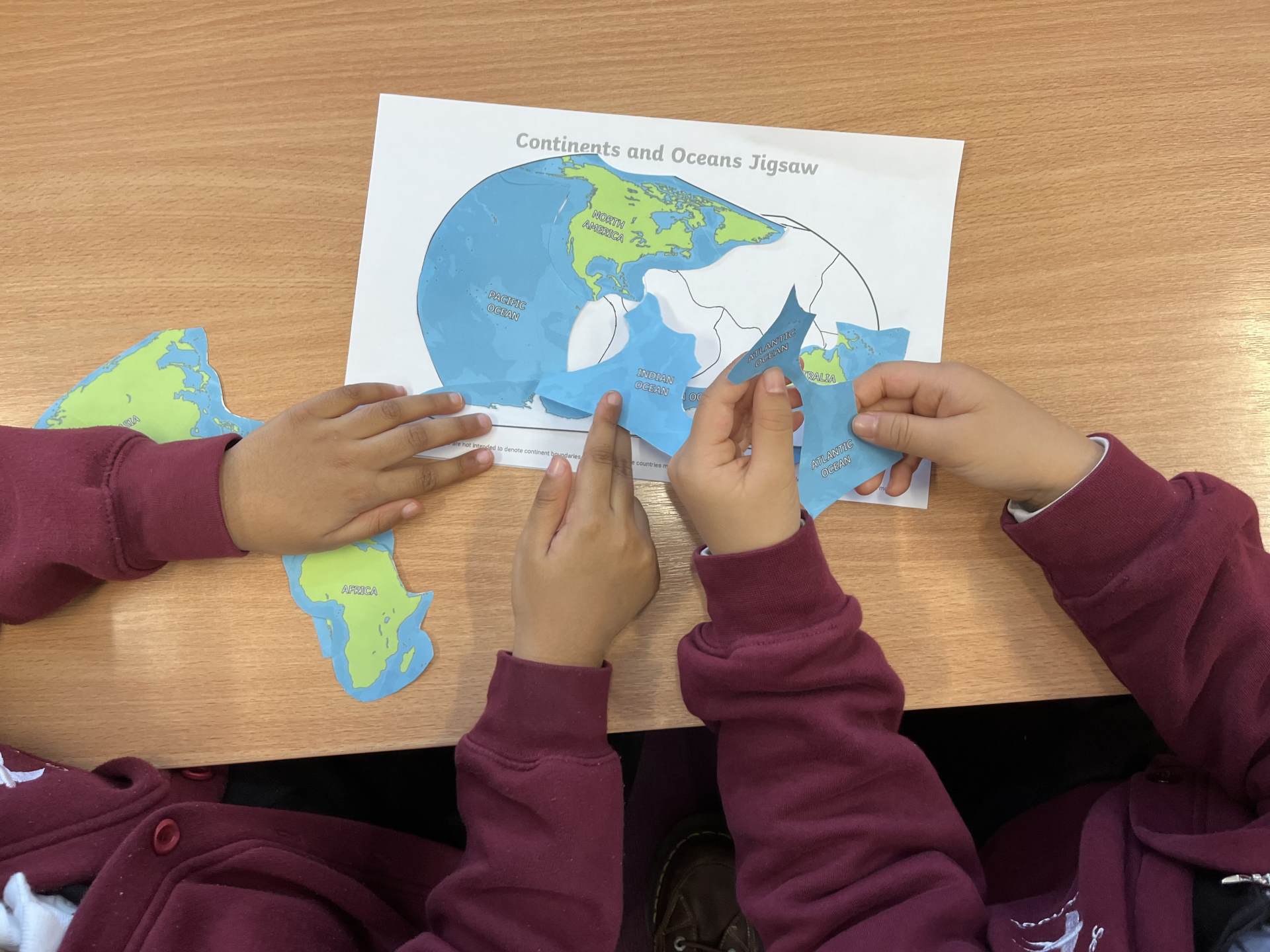Year 1The children looked at different types of bodies of water across the planet including rivers, lakes, ponds, seas and oceans. They learnt that oceans are the largest bodies of water on Earth and there are five in total. They learnt the names of the oceans and information about each one. They then located them on the world map. Finally, the children put their knowledge of the continents and oceans together to complete a jigsaw of the world map. |